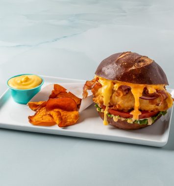 - Celebrate smart choices with plant-based cheese sauce on fried cauliflower bites, cauliflower chalupas or a mushroom burger.