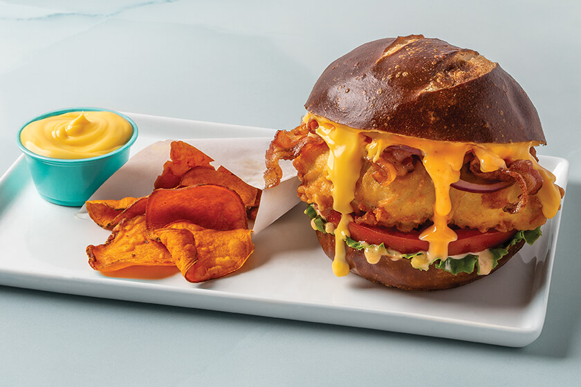 - Celebrate smart choices with plant-based cheese sauce on fried cauliflower bites, cauliflower chalupas or a mushroom burger.